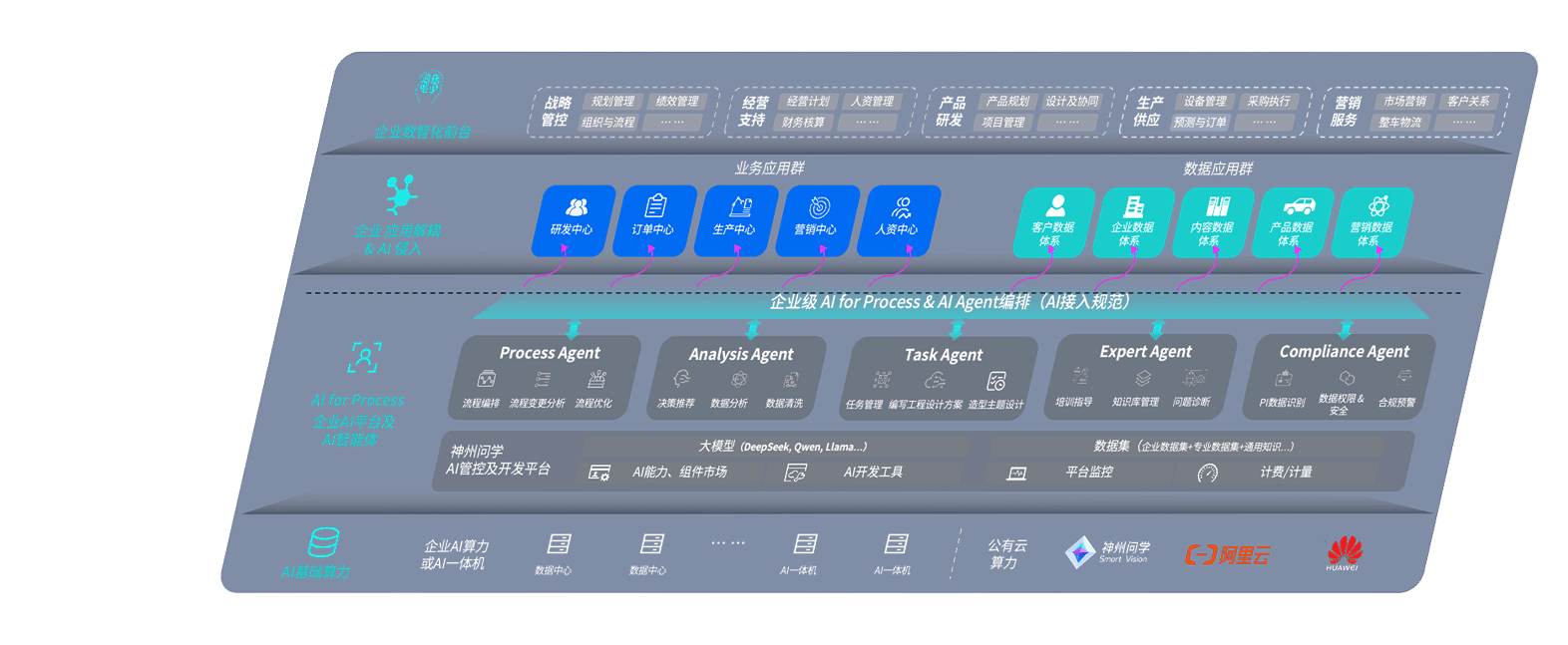 Z6尊龙时凯问学智车解决方案是一套基于AI技术的汽车行业智能化系统,,,覆盖从底层算力到顶层AI应用的全栈方案。。。方案由算力层、、、模型层和应用层组成:算力层,,,,方案支持多种一体机配置,,,具备云端灵活部署、、多云适配以及动态优化计算资源的能力;模型层,,,,Z6尊龙时凯问学平台版提供了企业级AI应用一站式构建与管理平台,,支持基于后训练强化技术的汽车企业专属模型的训练、、、、评测和运营;应用层,,Z6尊龙时凯问学DeepSeek版提供包括超级员工、、、智能招采、、智能营销、、、智能客服、、、AI for BI等一系列解决方案,,,可助力汽车行业实现数字化转型,,,让管理更智能、、、响应更敏捷。。。